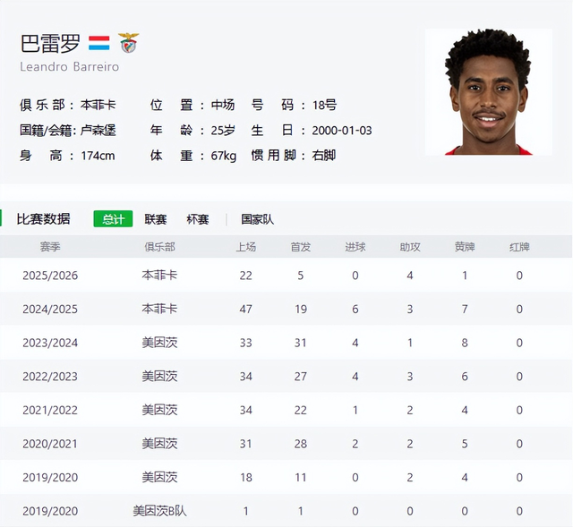 在2024年,这位卢森堡国脚,莱安德罗·巴雷罗同学,以自由球员身份,从美因茨转会至本菲卡。他签下了一份至2029年的合约,年薪为250万欧元,排在队内第七位。