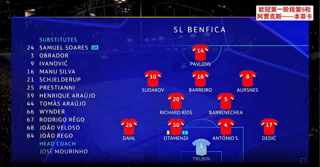 然后真正让穆里尼奥认识这哥们的是,费内巴切对阵本菲卡的欧冠生死战。比赛开场才4分钟,巴雷罗就门前劲射,要不是利瓦科维奇神反应,费内巴切可能开场就崩了。 第16分钟,帕夫利季斯利用角球刨门,结果VAR介入,巴雷罗越位在先,进球不算。