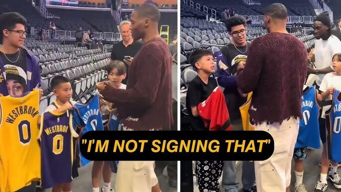 北京时间10月19日,距离新赛季NBA常规赛开幕还有3天的时间。根据之前的报道,前MVP得主威斯布鲁克与国王队签约。威少被拍到在为球迷签名的时候,唯独没有给湖人球衣签名。